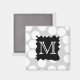 Este design tem forma de splat preto e letra de monograma branco, em um padrão de manchas brancas em cinzas de luz. A letra inicial pode ser personalizada. Um design monocromático divertido.