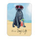 É a vida de um cão! Tenha legal e comemore os dias de verão do cachorro com esse filhote bonitinho de Dane vestindo óculos de sol e relaxando com uma bebida na praia.