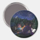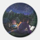A arte Starry Night de Traci Van Wagoner impressão, posters, acessórios e presentes mostra nossa pintura original de duas crianças e seu grande e negro cão acampando sob as estrelas lendo um livro fantástico ao redor de um fogo no acampamento sobre cavaleiros e dragões. A magia da história está subindo no céu estrelado para mostrar um cavaleiro e um dragão numa dança eterna noturna de estrelas. Aproveite um acampamento noturno de verão nas montanhas.
