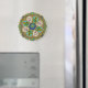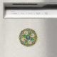 Arcos Art Nouveau cercam as camadas de vidro manchadas desta mandala, apresentando fogos de artifício, girassóis, conchas, sóis e tempestades em cores brilhantes para incorporar a atividade que vem com o verão.