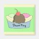 Para alguém que ama sobremesas e sorvetes. Um sundae delicioso com três colheres de sorvete delicioso, uma banana e uma cereja para cima.