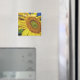 Bright and cheerful giant sunflower and shy insect guest hiding under the petals flower nature photography by Susan personalized refrigerator magnet. You can personalize this magnet with any text you like by clicking on Customize. This image is available on many products in my gallery.