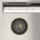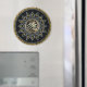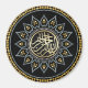 Paz e Amor. Espadim design único inspirado, círculo de padrão dourado e brilho prateado; centrado na frase 'Bismillah' na caligrafia árabe no centro, para bênçãos islâmicas diárias