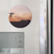 Brighten your kitchen or office with this fridge magnet, showcasing a beautiful sunset photograph. The vivid orange and purple sky, with a charming town silhouette, adds a pop of color and serene beauty to any metallic surface. It's a perfect small accent or a thoughtful gift.