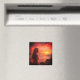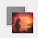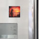 Este ímã tem uma senhora olhando para o pôr do sol nele.