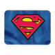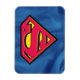 Uma versão biselada do logotipo clássico Superman S-Shield sobre uma textura azul de tecido.