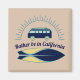 Trendy Campervan e surfboard com texto opcional "Preferencialmente na Califórnia".