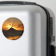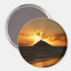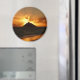 Imagem fotográfica redonda de souvenir com um sol cor de laranja quente sobre a ilha de Mokulua em Lanikai Beach, Oaha, Havaí, EUA.