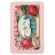 Linda e vintage Arte vitoriana de um par de elegantes cisnes brancas flutuando em um lago enquadrado por rosas vermelhas e cor-de-rosa esquecendo-me de flores com um quadro de deco de arte verde.