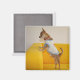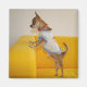 charlie estava um pouco preocupado quando sua garota deixou o quarto - ele parece adorável no banco amarelo seu casaco branco fino