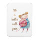 A ilustração de uma adorável aquarela apresenta uma menina moderna vestida de azul, abraçando suavemente uma grande bola de fio. Citação em caracteres castanhos claros: "A vida é melhor com fios". O presente perfeito para tricotadores, croqueteiros e outros fãs de fibra.