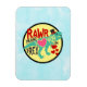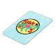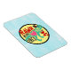 Um ímã flexível com a imagem de um t-rex verde vestindo um chapéu preto com corações ao redor. O texto diz que Rawr quer dizer que te amo em t-rex.