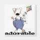 Um cão manchado branco e marrom adorável com uma barriga carnudo que veste macacões da sarja de Nimes voa um papagaio e o texto preto lê "adorável" em t-shirt, em hoodies, em bodysuits, em chapéus, em canecas, em cartões, em etiquetas, no chaveiro, e em mais adoráveis do cão.