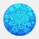Design de tartaruga azul-oceânica inspirada por tatuagens tribais polinésias. Fundo azul oceânico das tartarugas marinhas Honu havaianas azuis e flores de hibisco.