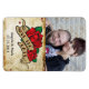 Tatuagem Rosa Salve a data Foto Magnet. Uma tatuagem de excelente inspirou uma ilustração rosa vermelha sobre um fundo de papel pergaminho que está aflita. Os rosas sentam uma parte superior de uma faixa que lê salvam a data e as estrelas vermelhas. Um casamento completamente absurdo inspirou uma design de tatuagem para aquela noiva absurda! Contacte-me para obter encomendas personalizadas ou ajuda para qualquer coisa.