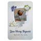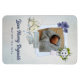O design delicioso apresenta um belo estilo de raspagem em tons azuis e lacrimogêneos que evocam um senso de calor e tranquilidade. No coração da design está uma foto de bebê personalizável, enquadrada por uma elegante borda azul clara. Adorando a borda superior do quadro estão flores delicadas e uma ilustração adorável das pegadas dos bebês, acrescentando um toque de brincadeira ao design. O fundo da armação mostra botas infantis intricadamente detalhadas e um chapéu de bebê aconchegante, simbolizando o amor e o cuidado aguardando seu precioso de alegria.