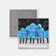 Imã Teclado Piano de Rosas Azuis e Notas de Música