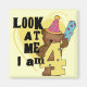 Teddy Bear Eu sou T-shirts de 4 anos, 4 anos, botões, canecas, ímanes, cartões e outros itens com texto que diz "Olhe para mim, tenho 4 anos"!