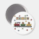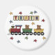 Dois ursos de pelúcia pegam uma carona no trem em Camisetas do Teddy Bear Train, carroças, canecas, cartões, autocolantes, postagem, ímãs e outros itens de design do trem com texto em estilo de bloco que diz "TRAIN".