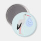 Este incrível ímã apresenta uma imagem gráfica de uma linda Stork branca com penas pretas segurando um pacote azul claro de cobertores. Há um texto azul no pacote que diz "Baby Boy". Esta design é perfeita para celebrar um bebê.