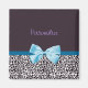 Um ímã de impressão azul e leopardo de ameixa com um arco de fita azul giro embrulhado como um presente. Personalize adicionando seu nome. Presente perfeito para uma menina adolescente!