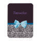 Um ímã flexível de impressão azul e leopardo de ameixa com um arco de fita azul giro embrulhado como um presente. Personalize adicionando seu nome. Presente perfeito para uma menina adolescente!