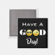 Um íman legal e moderno com a mensagem, "Tenha um bom dia!" usando o emoji piscando e os moji vestindo sombras. Faria um presente de excelente ou adição à sua decoração.