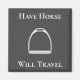Este design tem um ferro-duro inglês com as palavras "Have Horse Will Viagem" para mostrar que você e seu cavalo (ou pônei) estão prontos para qualquer coisa.