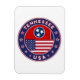 Crachá do Tennessee design com bandeira do Tennessee e bandeira americana, forma arredondada, estilo de etiqueta de bagagem para amantes de viagem. Veja toda a minha coleção de viagem e viagem. Nashville, Memphis, Knoxville, Chattanooga, Clarksville, Murfreesboro, Franklin, Jackson City, Bartlett