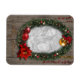 A coroa de Natal com ornamentos e Poinisiettia, pendurada numa parede de madeira para armar a sua foto. Mais itens com este design: www.zazzle.com/aura2000/wreath