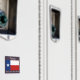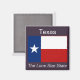 Uma imagem autêntica de qualidade superior da bandeira do Texas, definida entre o nome do Estado e o apelido sobre um fundo de cor de bandeira.