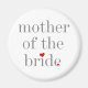 Texto da cinza Mãe das Camisas da design da Noiva, canecas, mousépias, sacos de tote, cartões, botões e muito mais para corresponder a cada membro da festa de casamento e aos membros da família. A design é um simples texto de cinza, as meninas têm pequenos corações vermelhos.