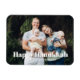 Feliz Hanukkah moderna tipografia minimalista moderalista simples e elegante ímã personalizado Hanukkah Holiday. Imagem ou imagem personalizada e texto branco totalmente personalizável na parte inferior do ímã. Cartão de crédito