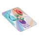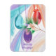 Pretty paint pour design of three Christmas balls, with a placeholder for your text is printed on custom flexible magnets. The Christmas balls are painted in a paint pour type design with a spray of a pine needle branch from one side. The colors include shades of turquoise and teal, orange, purple, and pink. Thank you for shopping at CherylsArt on Zazzle.