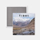 Paisagem típica de montanha com rio fluindo e neve em picos - Tibete