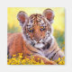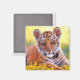 A Siberiana ou Bengala Tiger Baby Cub fecha a fotografia feita em pintura com laranja e amarelo vibrantes.