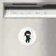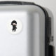 Ninja feliz de desenho animado vestido de preto com braço levantado em ondas. A espada tradicional japonesa katana pode ser vista em cima do ombro.