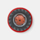 Fotografia do pneu do trator vermelho assado sobre fundo burgundy. Imagem copyright 2012 de Margaret E. Cmelik.