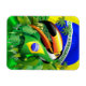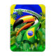 O tucano brasileiro sobre a selva tropical, vestindo uma espinha com as cores da bandeira brasileira. Para os amantes do Brasil e para os apoiadores da copa do mundo de futebol de 2014! Arte vetorial original Copyright BluedarkArt O ChameleonArt