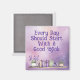 Este maravilhoso ímã apresenta uma estante de livros com lavanda e livros verdes e um vaso de flores lavandas em cada extremidade. A tipografia diz: "Todo dia deveria começar com um bom livro em uma fonte moderna. Fundo é uma camada de aquarela de lavanda pálida. Isso daria um belo presente para quem adora ler, seja professor, bibliotecário, autor, familiar ou colega de trabalho.