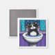 Dê à sua geladeira a transformação Purr-fect com este ímã caprichoso de um gato preto banhando na pia do banheiro. Arte original: acrílico na canvas © 2008 Lisa Marie Robinson