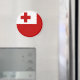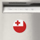A bandeira Tonga é um campo vermelho e, no canto esquerdo, um cantão branco com uma cruz vermelha. As cores usadas na bandeira são vermelho, branco. A proporção da bandeira Tonga é de 1:2. O pavilhão de Tonga foi adotado em 1875. O primeiro uso do atual design de bandeira foi em 1674. A última mudança para o atual design de bandeira Tonga foi em 1875.