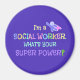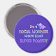 Super-herói do trabalhador social, texto pastel, design funky, imã.