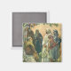 Ilustração Vintage design religioso Trabalhando no Sabá pelo artista Harold Copping, um ilustrador bíblico, c. 1922. Uma cena de bíblia com pessoas trabalhando no sabá, ou um dia de repouso tradicional. Um velho está sentado numa parede de rocha falando com Jesus Cristo.