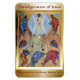 Ícone ortodoxo oriental de Transfiguração pintado no estilo tradicional Bizantino. Réplica após a obra-prima russa feita pelo grego Theophanes em 1408 AD. Pintado com a temperatura do ovo e dourado com uma folha de ouro de 24 k num painel de madeira com kovcheg (também conhecido como arca - um recesso na superfície).