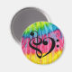 Os símbolos da clave e do bass são combinados para formar um coração musical, com o corante retro hippie gravata como fundo. Fácil maneira para músico clássico, compositor, baixista, artista, cantor, compositor expressar amor pela música. O íman de amante de música de cor arco-íris é uma ideia prática de presente para um professor de música, assistente, orquestra, DJ, estudante de música, coro, tocador de instrumentos de cordas, ou músico, incluindo banjo, baixo, violoncelo, harp, violão, piano, ukulele, viola, violino.