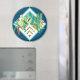 Imã de geladeira de tendências perfeita para um pop de diversão! Este ímã redondo tem um tema suculento e cacto. Eles plantaram um terrário geométrico do estilo moderno.