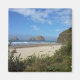 Uma bela manhã de verão na praia em Oceanside, Oregon. Uma visão clara do Oceano Pacífico com o Refúgio Nacional de Vida Selvagem de Três Rochas de Arch, ao largo.