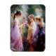 Uma pintura gerada por IA de três meninas brincando num jardim floral