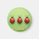 Três joaninhas vibrantes repousam sobre flores amarelas brilhantes contra um fundo verde vívido. Essa cena alegre transmite natureza, positividade e a beleza da simplicidade.